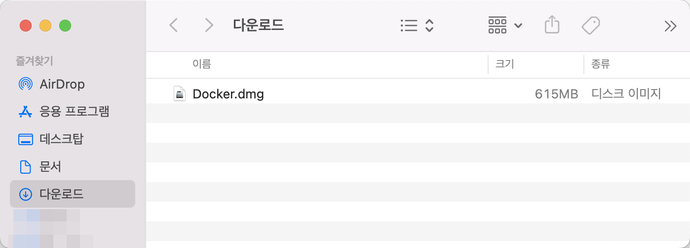 다운받은 폴더에 보면 Docker.dmg 파일이 있다.