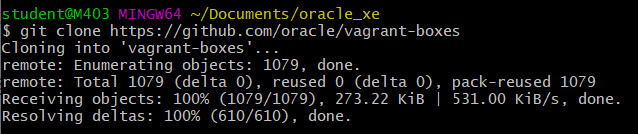 아까 readme 에 있던 git clone 명령어를 실행한다. (git clone https://github.com/oracle/vagrant-boxes)