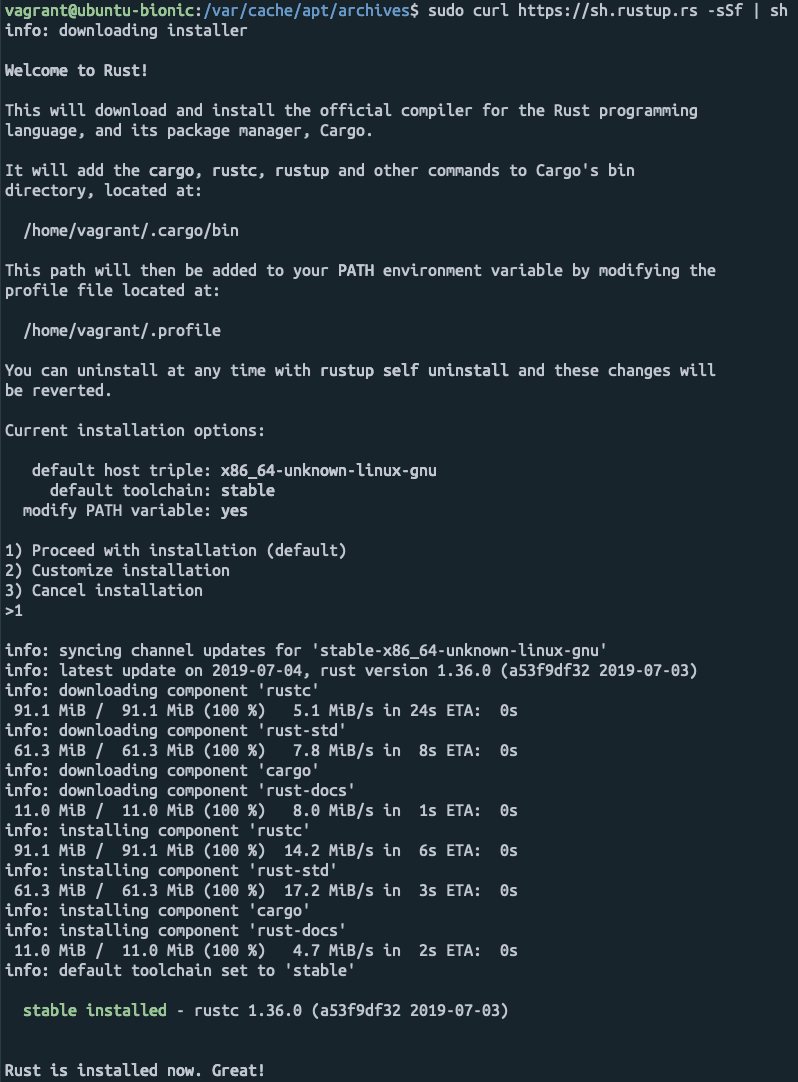 > sudo curl https://sh.rustup.rs -sSf | sh