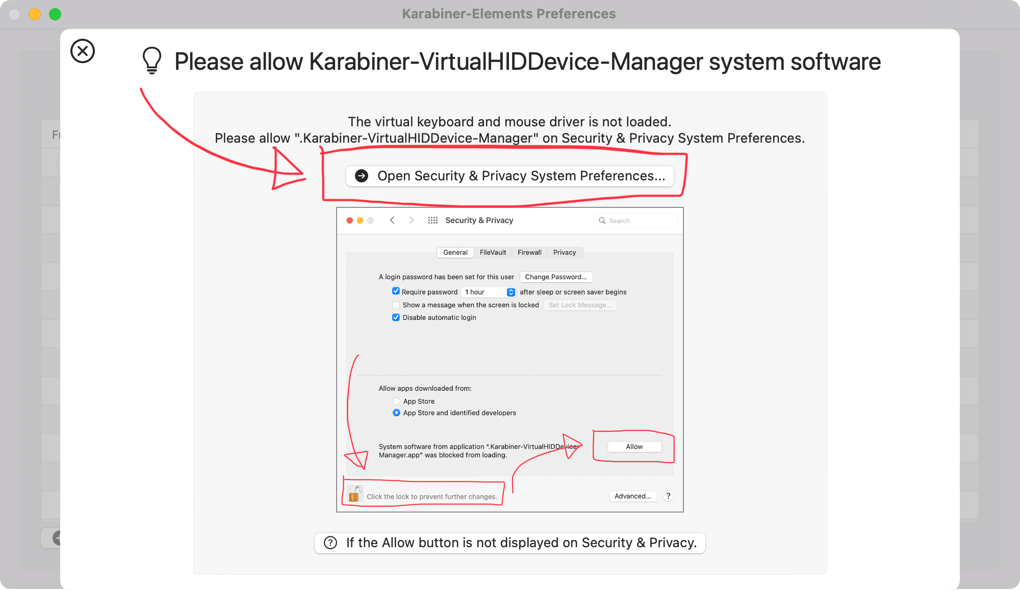 Some operations are required to grant proper permission from macOS to Karabiner-Elements. Follow these instructions to set up Karabiner-Elements. Install Karabiner-Elements Open the downloaded file. Open the .pkg file. The installer will be opened. Install