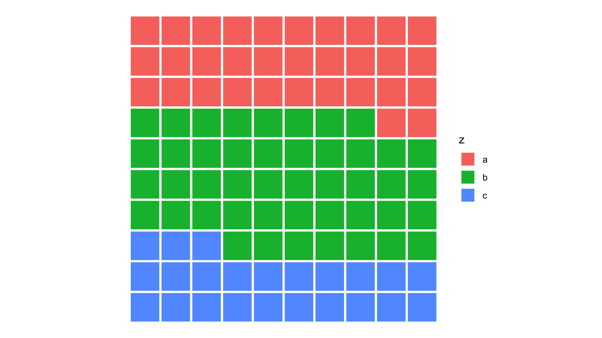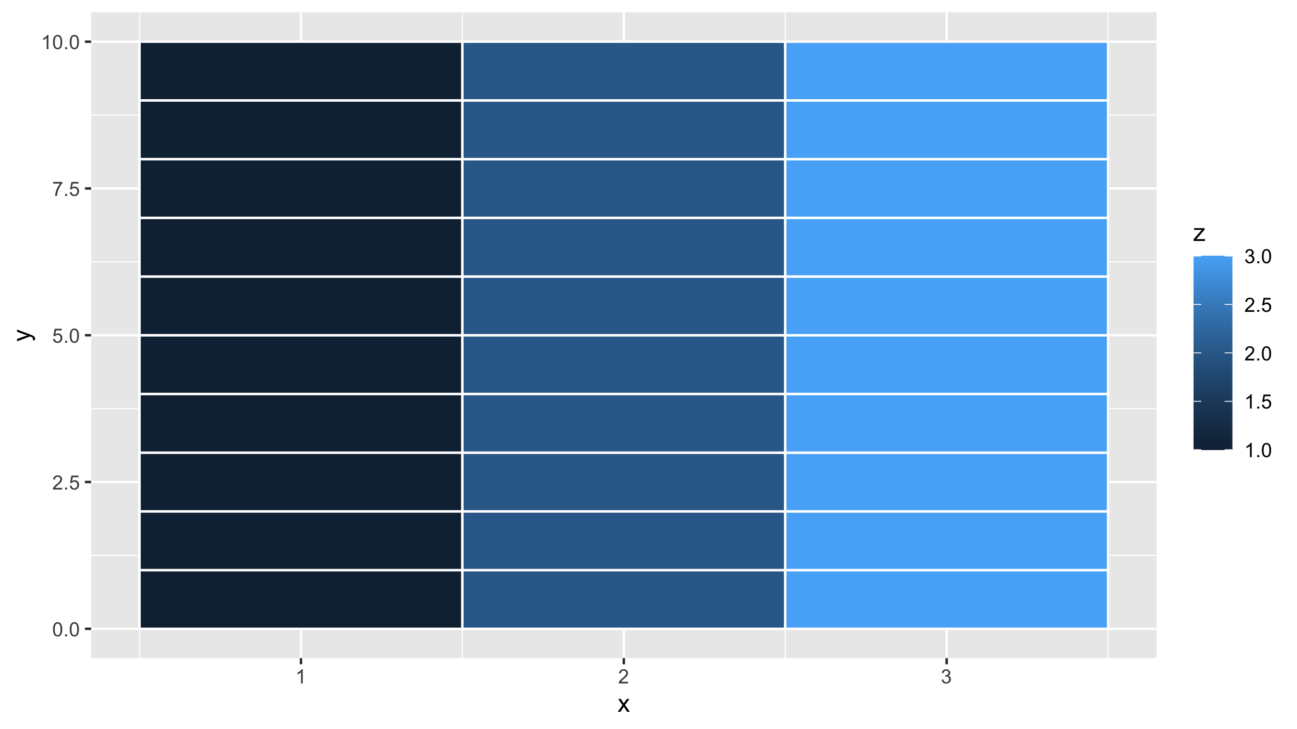 tibble(x = rep(1,10), y = rep(1,10), z = 1:10)