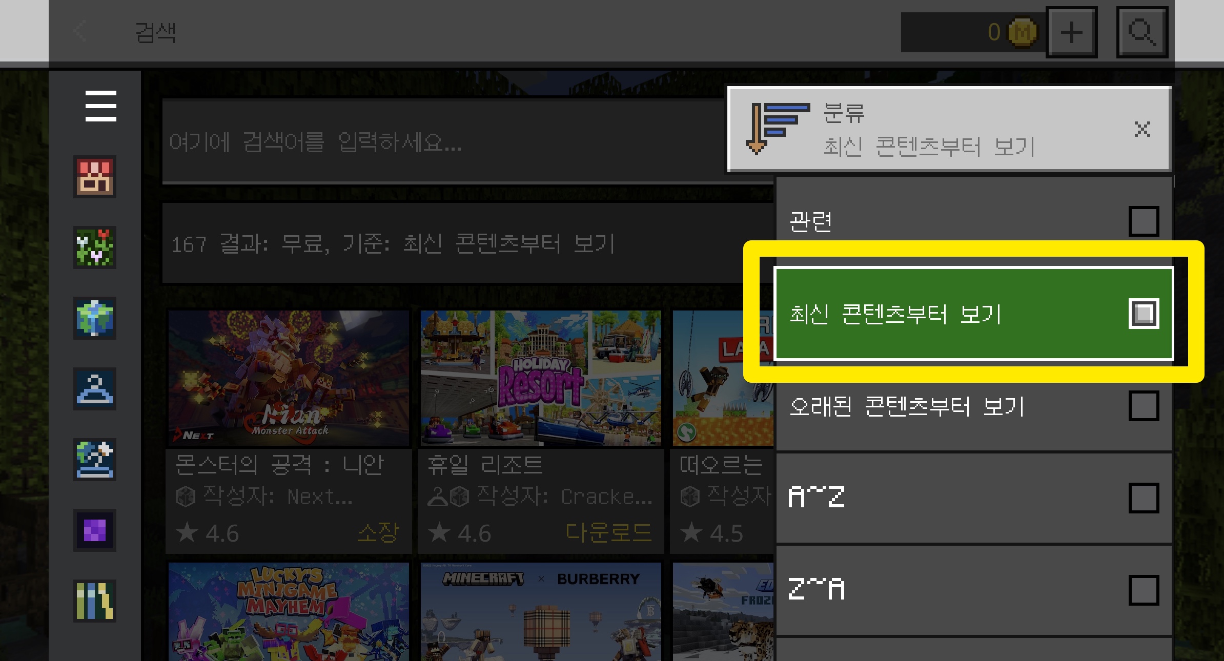 그러고 나면 무료 컨텐츠만 나오는 것을 확인할 수 있고, 최신 컨텐츠부터 보고 싶으면 상단에 정렬 아이콘을 선택한다.