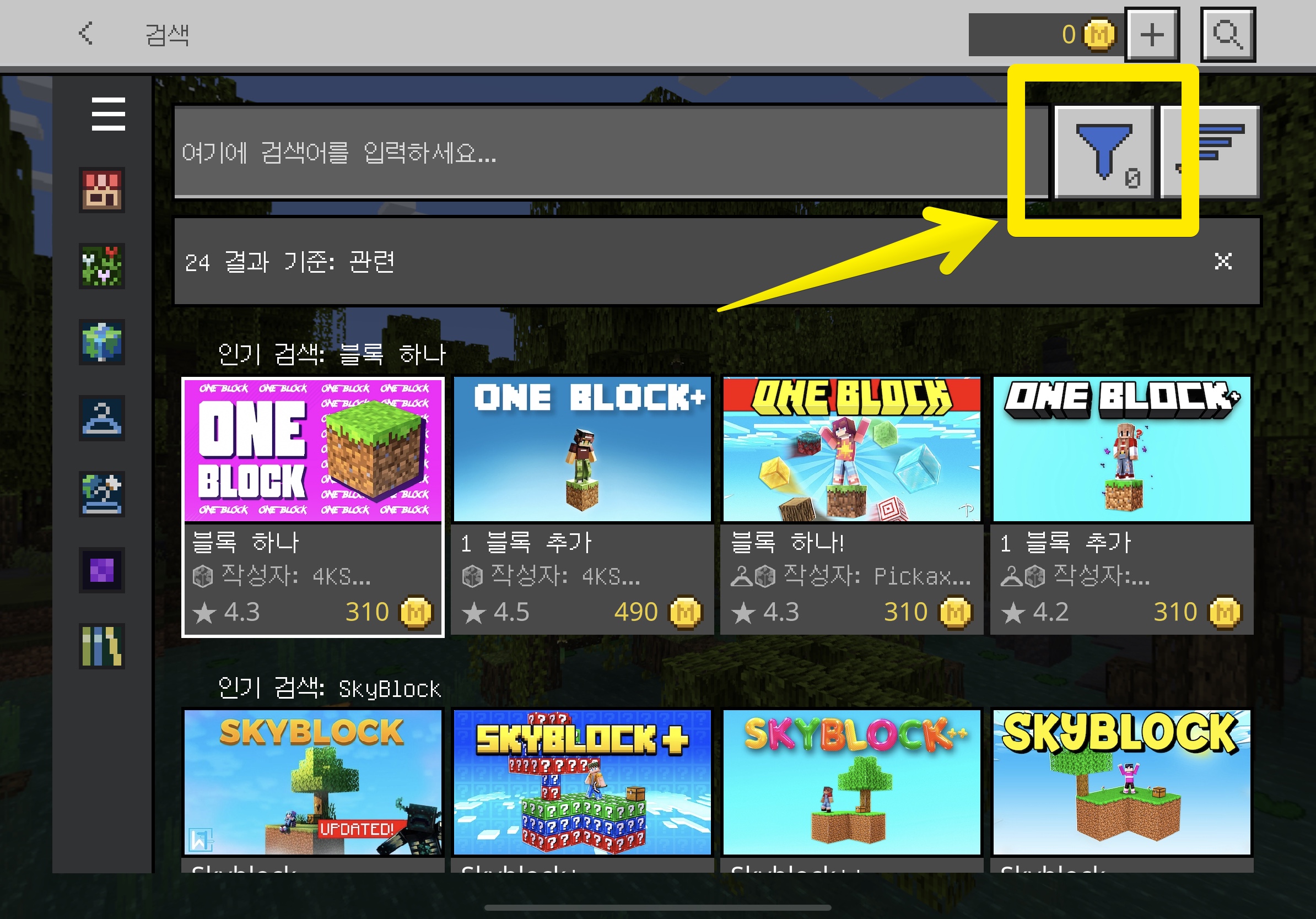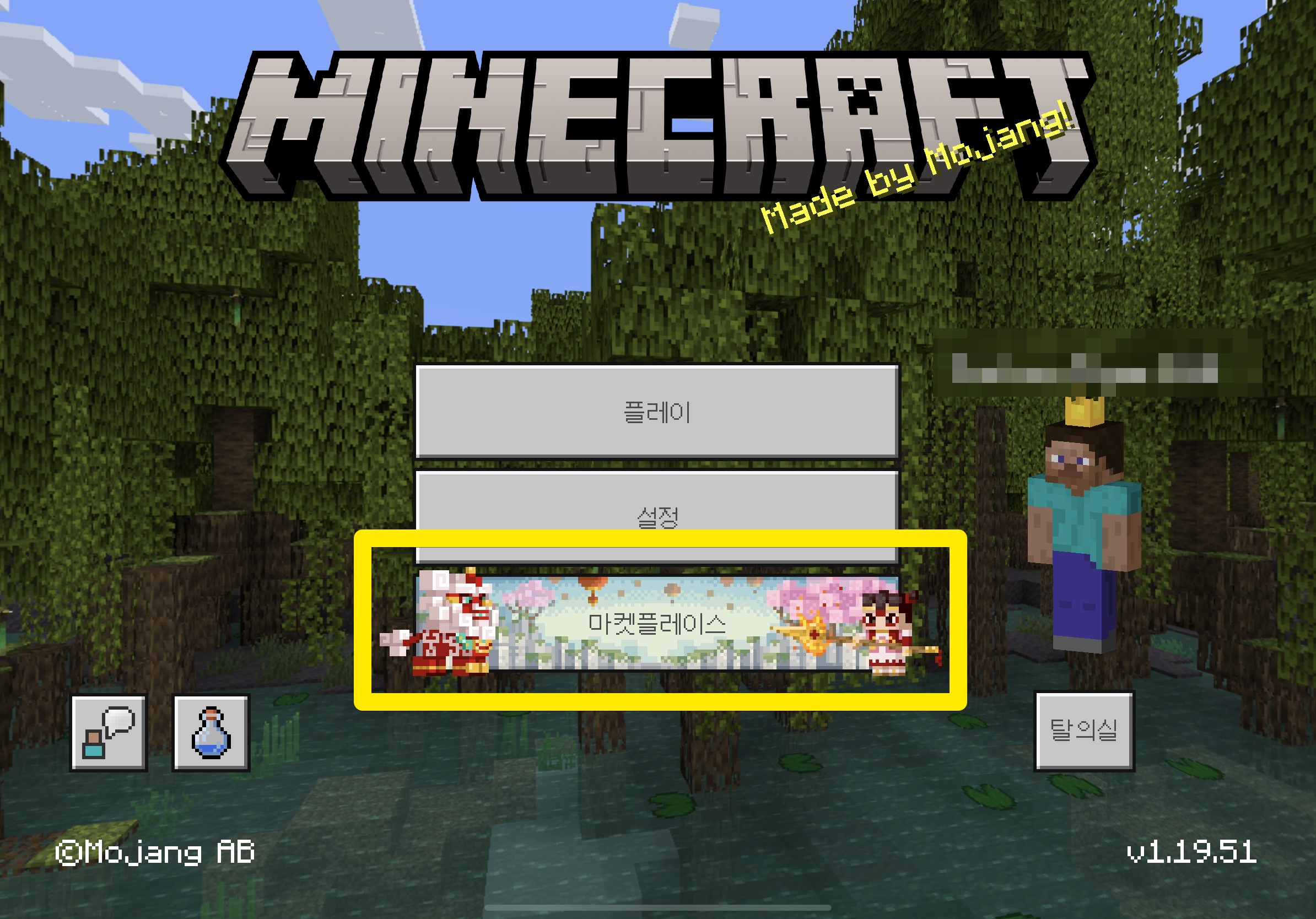 아이폰 혹은 아이패드 마인크래프트 앱을 실행한다. 그리고 마켓플레이스에 들어간다.
