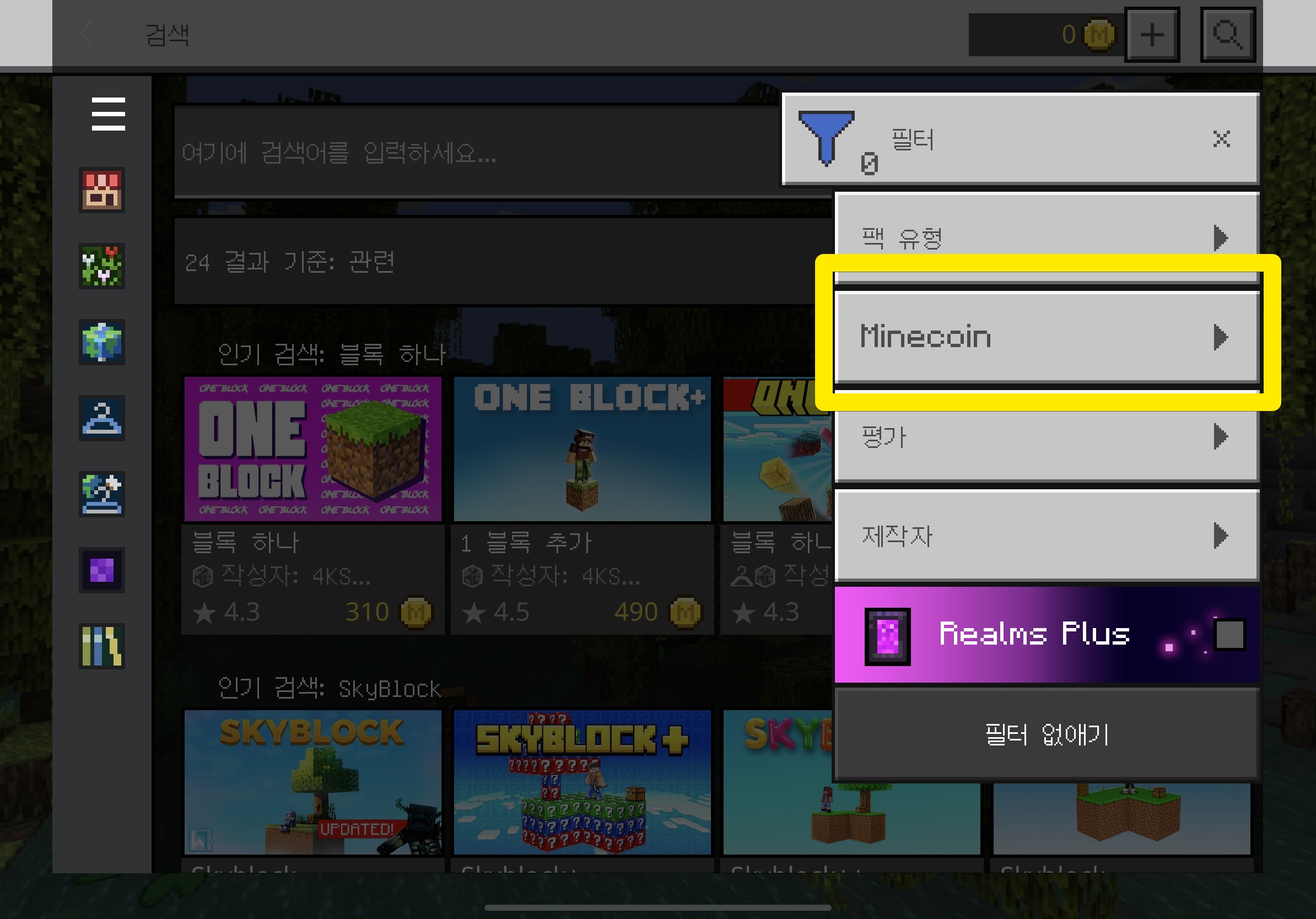 메뉴가 열리고, 그 안에서 [Minecoin] 을 클릭한다.