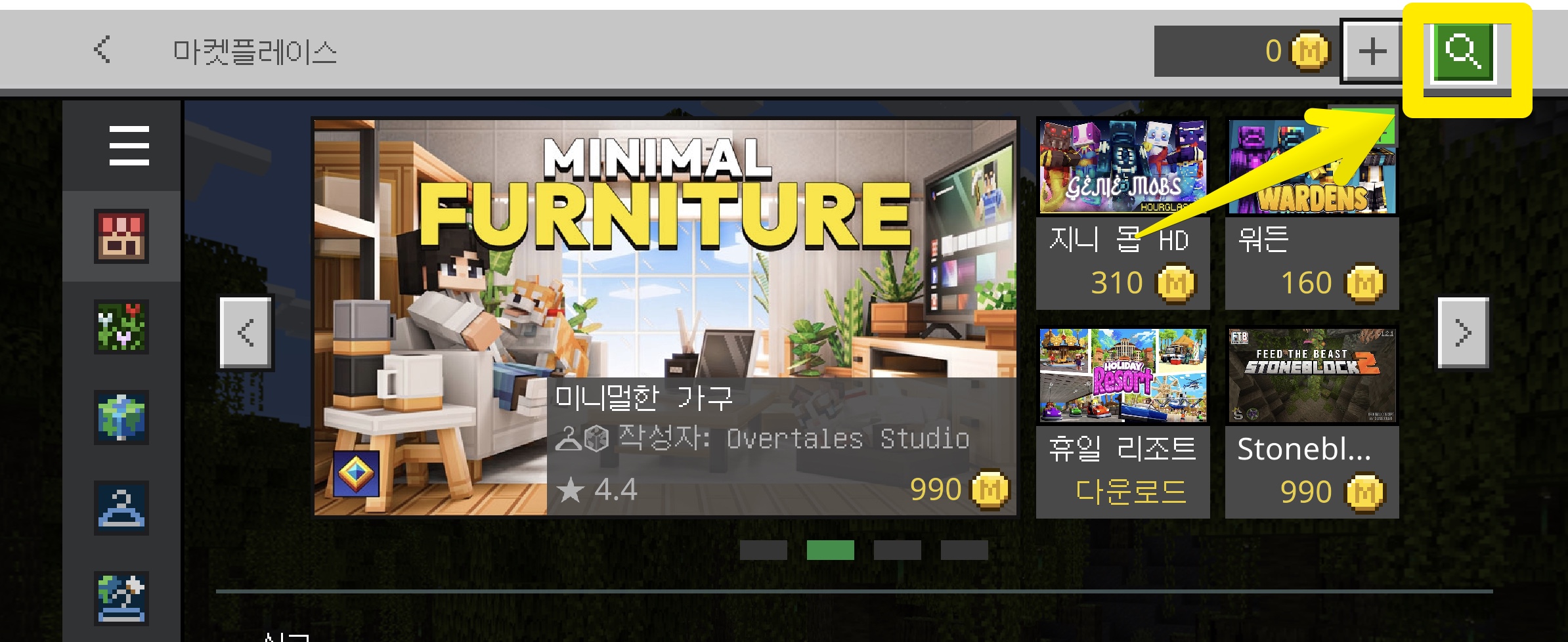 마켓플레이스 상단에 보면 돋보기 표시가 있는데 각종 컨텐츠들을 조건에 따라 검색이 가능하다. 클릭하자.