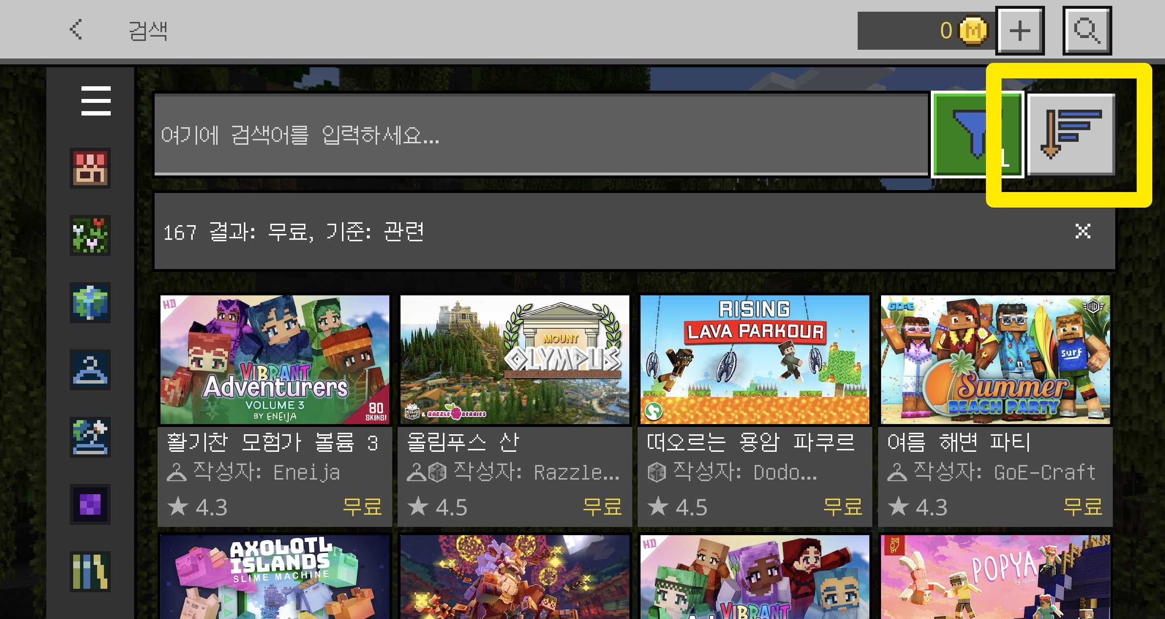 그냥 새월드 생성으로 맵을 즐길 수도 있지만, 마켓플레이스에서 맵을 받아 설치하면 다양한 맵을 즐길 수 있다. 다만, 대부분 유료맵이다 보니 망설이게 되는 건 어쩔 수 없다. 그중에 무료맵을 찾아 다운받는 과정을 담아본다.