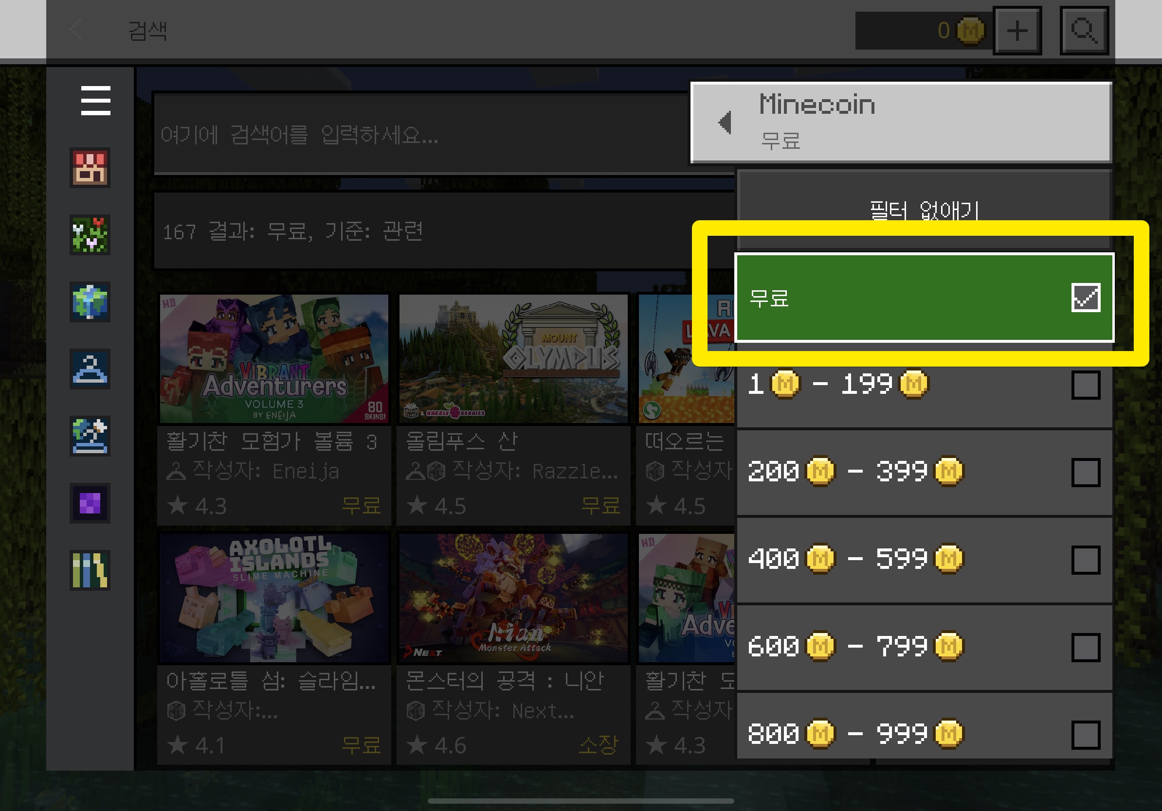 금액의 범위를 정할 수 있는 창이 보일텐데, 그 중에 무료를 선택한다.
