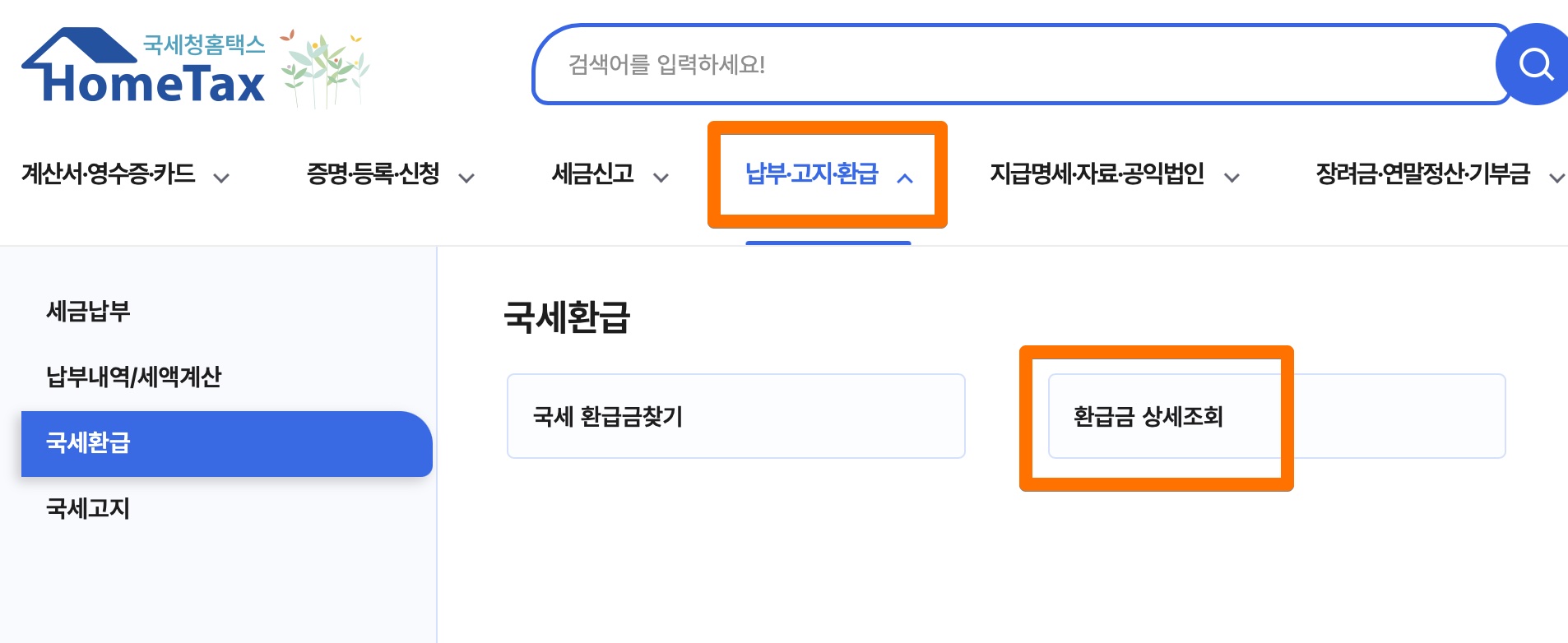 여기서 제일 내가 편한 홈텍스로 신청해봤다. 우선 환급금 상세조회를 한다.