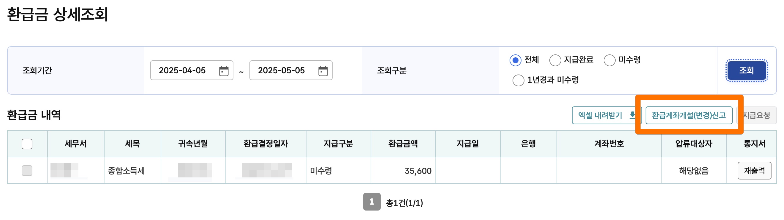 클릭해서 계좌신고를 한다. 이제 환급되기를 기다리기만 하면 된다.