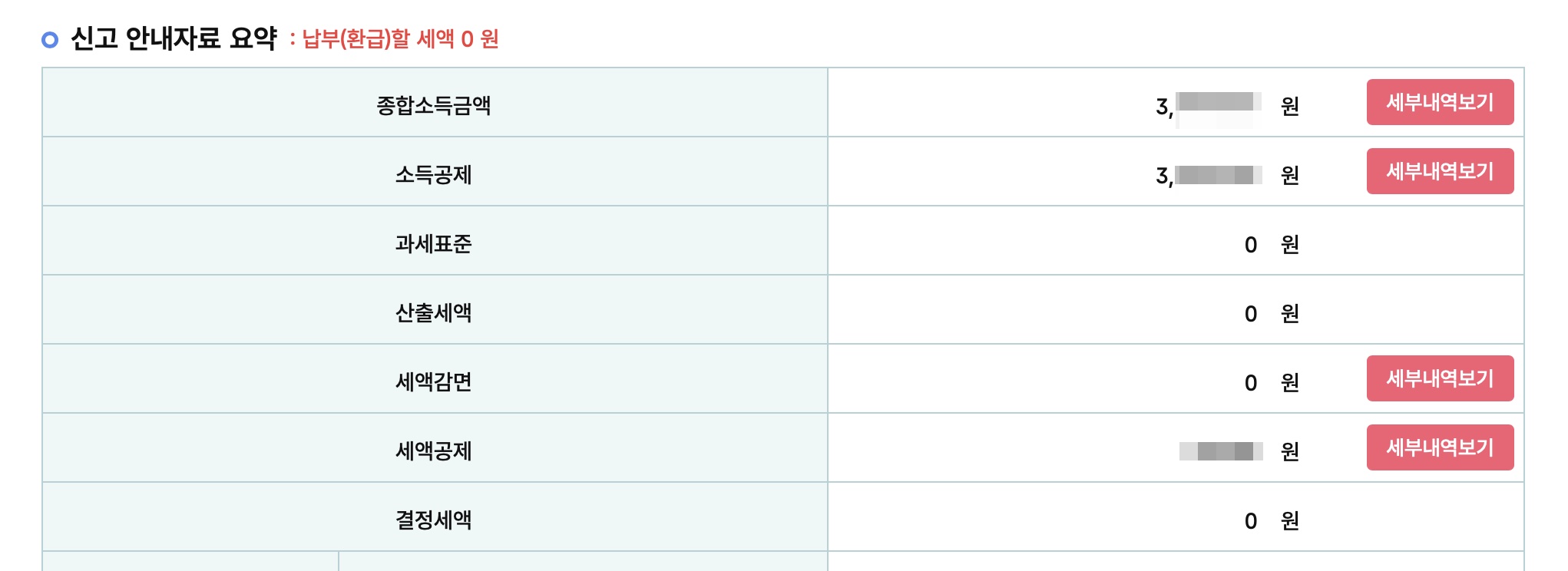 종합소득금액은 종합소득액은 총 수입금액에서 경비금액을 제외한 금액이다. 참고로, 2400만원 미만 수입금액이 발생하는 교육서비스 업종이라, 단순경비율을 따르고 있고, 공부방 및 교습소는 단순경비율 78% 로 계산된다. 소득공제는 본인공제 및 국민연금납부금액으로 공제되었다.