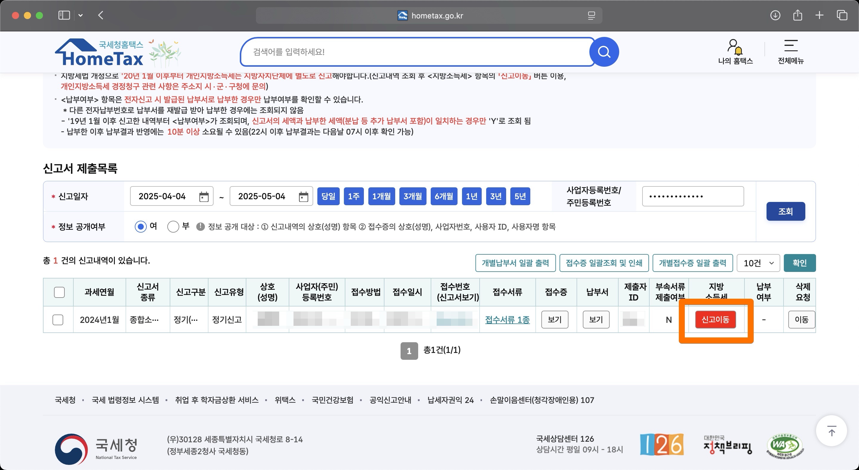 종합소득세 신고는 끝났지만, 지방소득세는 별도로 처리해야 한다. 신고서 제출목록에서 지방소득세 신고이동 버튼을 클릭한다. 위텍스 홈페이지로 이동하며, 종합소득세신고와 마찬가지로 다 입력이 되어 있어 클릭만하고 넘어갔다. 종합소득세 신고가 이렇게 간단할 줄이야. 영세한 개인사업자들은 조금만 공부하면, 세무사를 끼고 할 필요가 전혀 없어보인다.